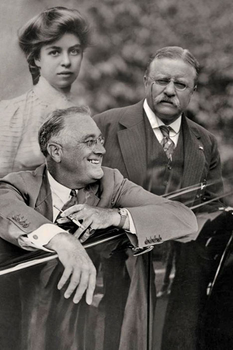Franklin Delano Roosevelt y Theodore Roosevelt eran primos lejanos. Como nota de color: la esposa de Franklin, Eleanor, era sobrina de Theodore. Esta dinastía política fue fundamental en el expansionismo estadounidense.