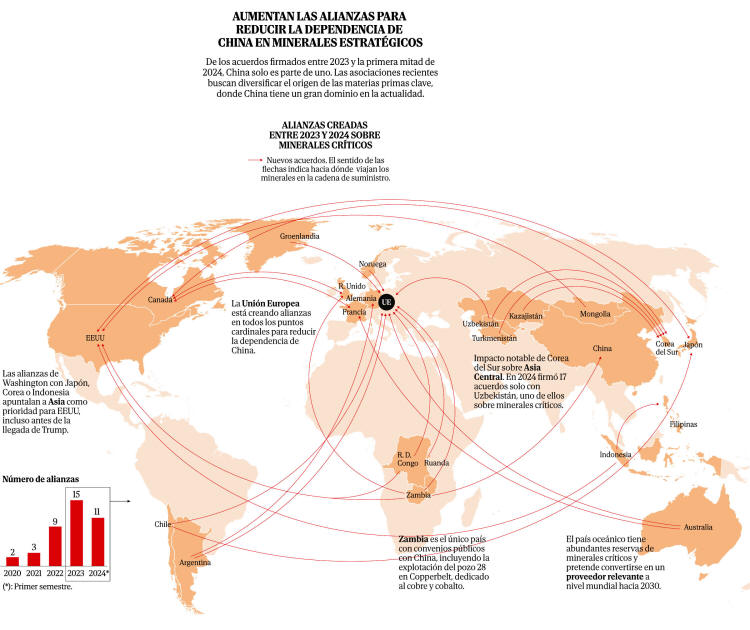 AQUÍ la telaraña de acuerdos con países emergentes para tratar de blindar su suministro de materias críticas... pero Pekín lleva 20 años de ventaja...
