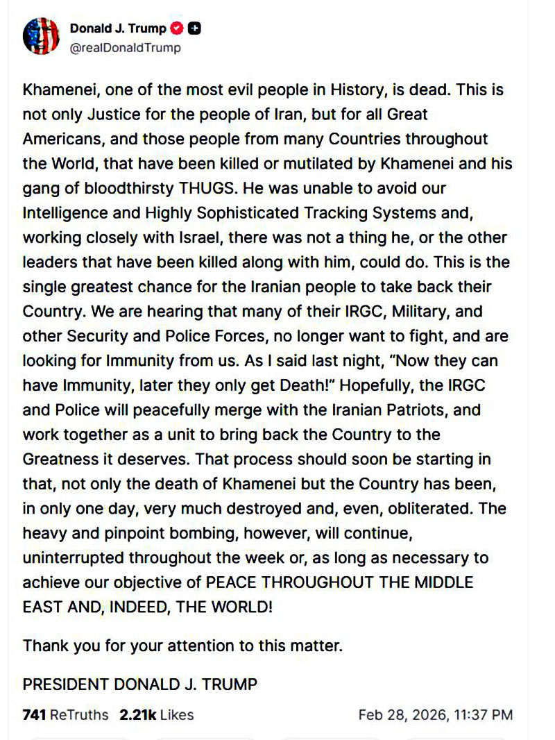 que no solo ha muerto Jameneí sino que el país ha quedado,