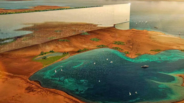 Según un documental emitido por Discovery Channel en 2023, el propio príncipe planteó transformar un plan urbano de 2 kilómetros de ancho en dos torres enfrentadas que se extendieran de forma continua a lo largo del desierto.