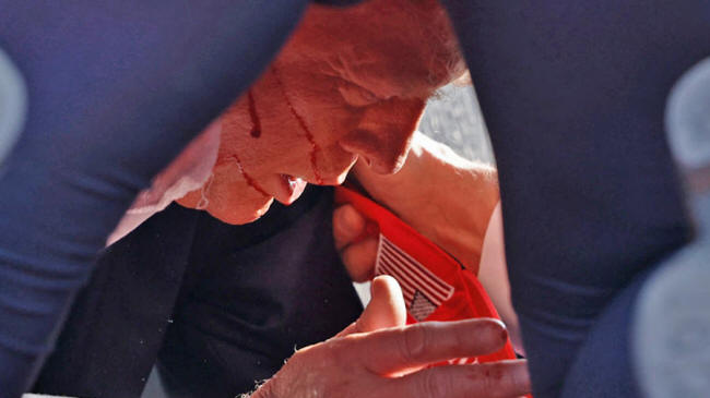 Secret Service tend to Donald Trump after his attempted assassination in Butler, Pennsylvania, July 13, 2024