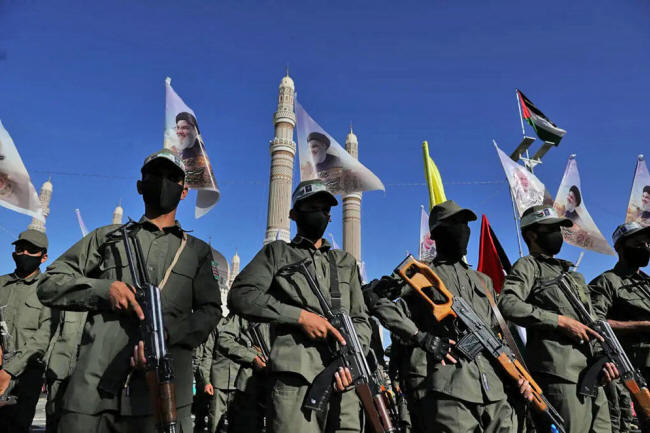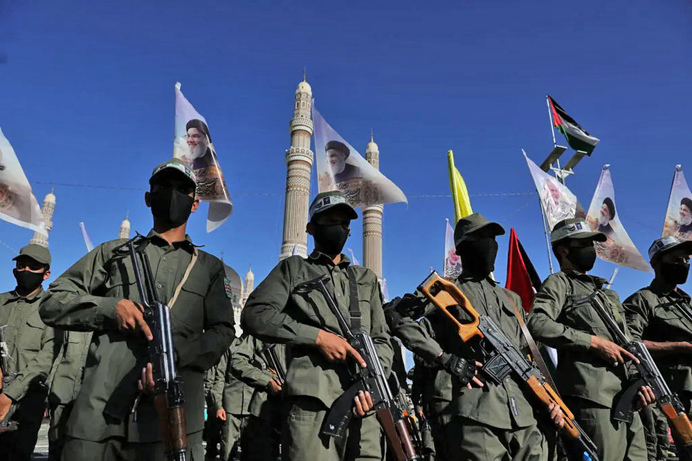 Houthi fighters in Sanaa, Yemen, in 2024. The regional militias supported by Iran are still active. Credit: Khaled Abdullah/Reuters