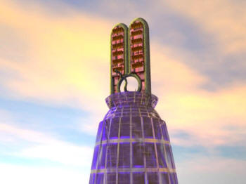 The complete Ark with its pillar attached. The device stood between 45 and 180 feet tall. The dimensions of the Ark given in the book of Exodus