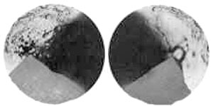 Figure 7. Mars crustal dichotomy. Cratered highlands (white), lowland plains (shaded). Left: western hemisphere, 180° à 0°. Right: eastern hemisphere, 360° à 180°.