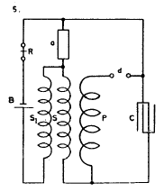 In 6. a similar connection is used with a buzzer b to excite device a through secondary S.