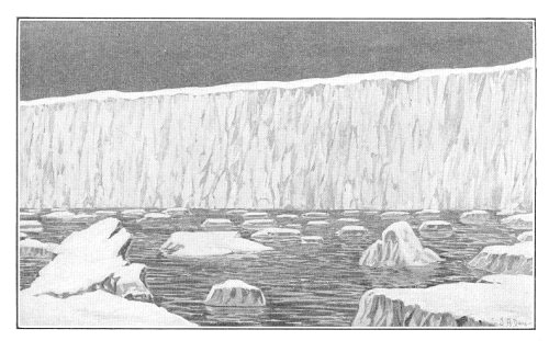 On page 263 Bernacchi speaks of the Great Ice Barrier, and refutes what others have written about it. "It appears as if the ice barrier is nothing more than a huge tongue of ice flowing eastward into the ocean for a distance of perhaps five hundred miles, and possibly not more than fifty miles in width." "The heavy ice-pack met with near this spot tends to prove the existence of a considerable tract of ocean to the south, whose frozen surface breaks up only late in the year, and moves out and around the extremity of the Great Ice Tongue, or Barrier, in the usual northwesterly direction. If an extensive land-area were behind, or farther east, such a large mass of sea-ice would be impossible." "Sir James Ross reported the 'appearance of land' to the south of a spot near where we landed on the barrier. We did not, however, sight any, although we had exceptionally fine, clear weather."