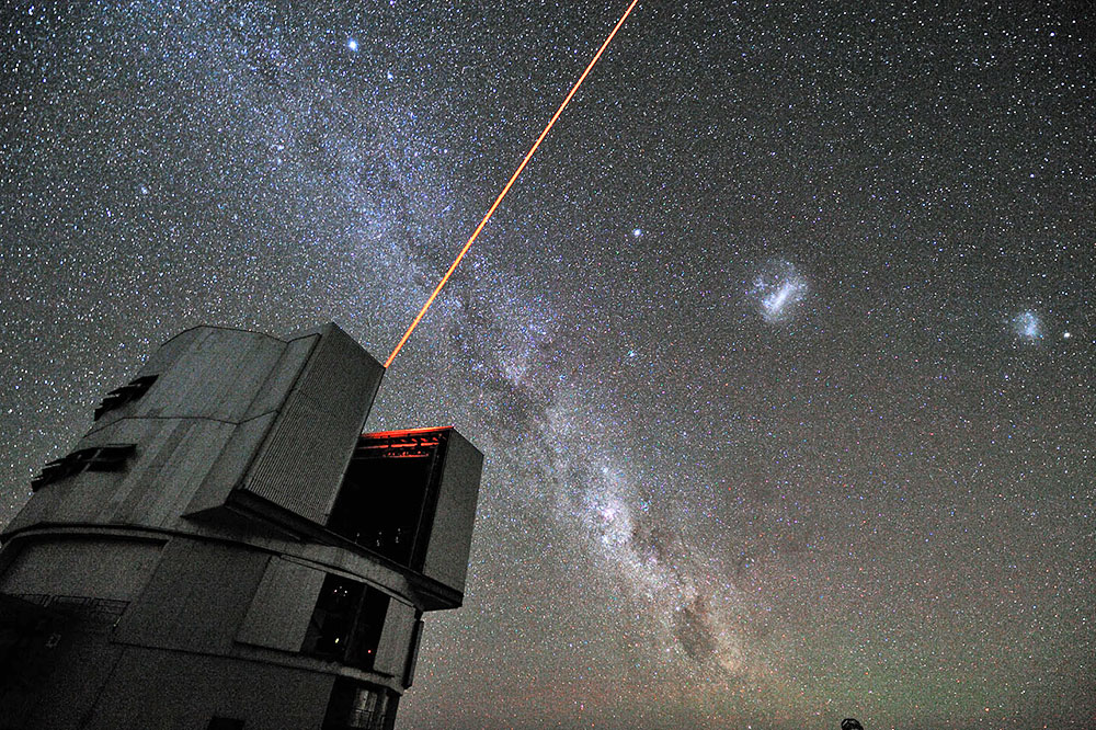 A laser beam launched from the Very Large Telescope (VLT) at the ESO's La Silla Observatory in Chile. Credit: ESO