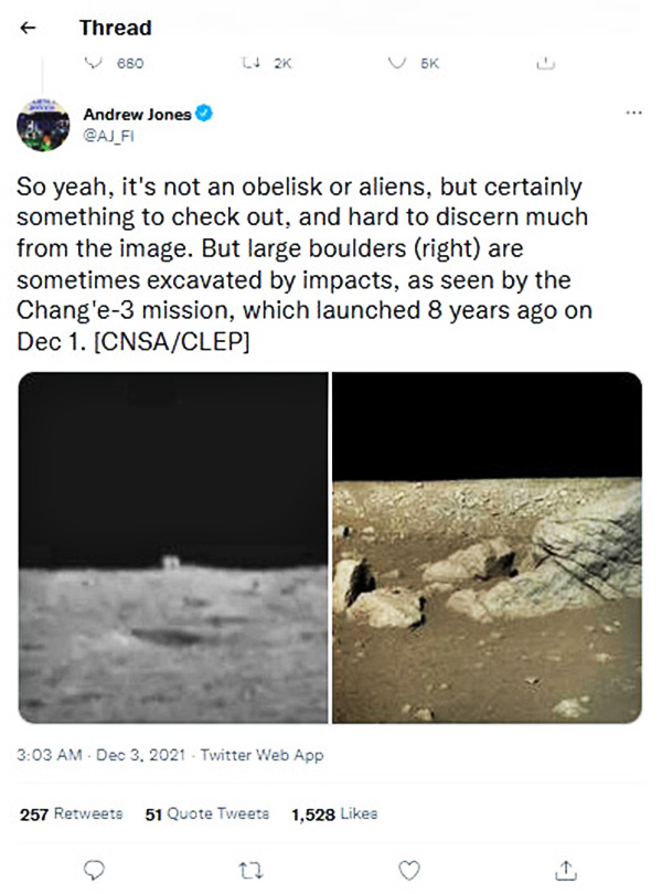 Yutu 2 spotted a cube-shaped object on the horizon to the north and