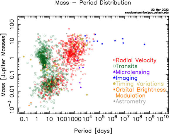 used to determine the properties of the first 5000+ (technically, 5005) exoplanets ever discovered. Although there are planets of all sizes and periods, we are presently biased toward larger, heavier planets that orbit smaller stars at shorter orbital distances. The outer planets in most stellar systems remain largely undiscovered, but those that have been discovered, largely through direct imaging, are difficult to explain