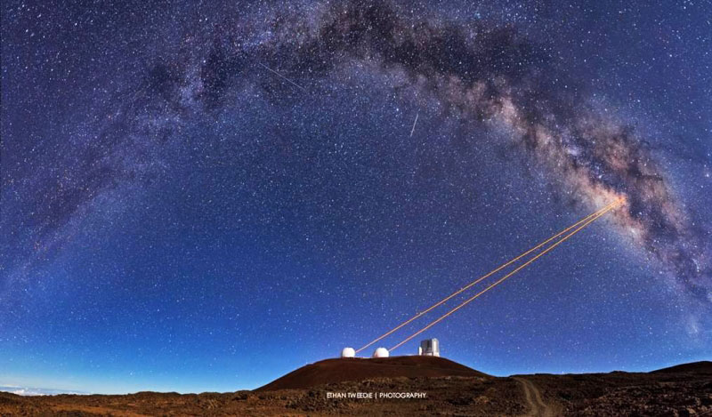 The two, 10-meter optical/infrared telescopes near the summit of Mauna Kea on the Island of Hawaii feature a suite of advanced instruments including imagers, multi-object spectrographs, high-resolution spectrographs, integral-field spectographs and world-leading laser guide star adaptive optics systems.