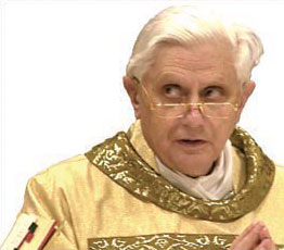 He now calls himself Pope Benedict XVI, but Ratzinger just isn't Pope material. He's an embarrassment to Christianity, and he has no business leading any religious meeting where a cross isn't burning in the background.