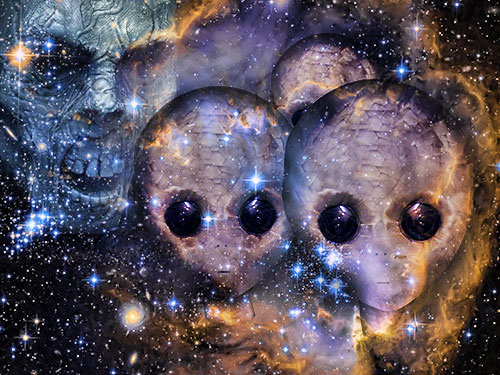 Pero eso no les impide imitar crudamente, caprichosamente y ostentosamente a los extraterrestres, conectándolos telepáticamente con un sujeto crédulo y creando para ellos un elaborado sistema de creencias.