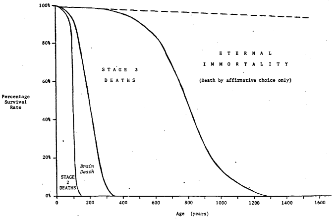 Societies which choose (1) aren’t around any longer. Those which choose (3) go on to become Type II cultures, whom we have argued will have biotechnology just as those who choose course (4). Alternative (2) is unlikely, both be cause the fruits of medical science are sweet and addictive, and because such a solution will reduce the population-carrying capacity of the planet by several orders of magnitude -- which means death on a massive scale.